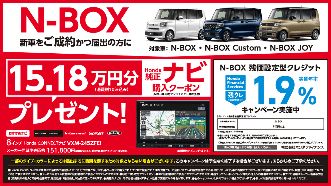 - VEZEL・WR-V・N-BOX 実質年利 1.9% 残クレ & バリ保 キャンペーン実施中!