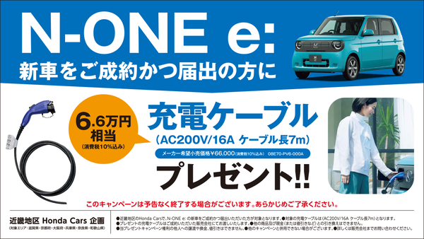 - N-ONEe 新車をご成約かつ届出の方に「充電ケーブル(6.6万円相当)」プレゼント!